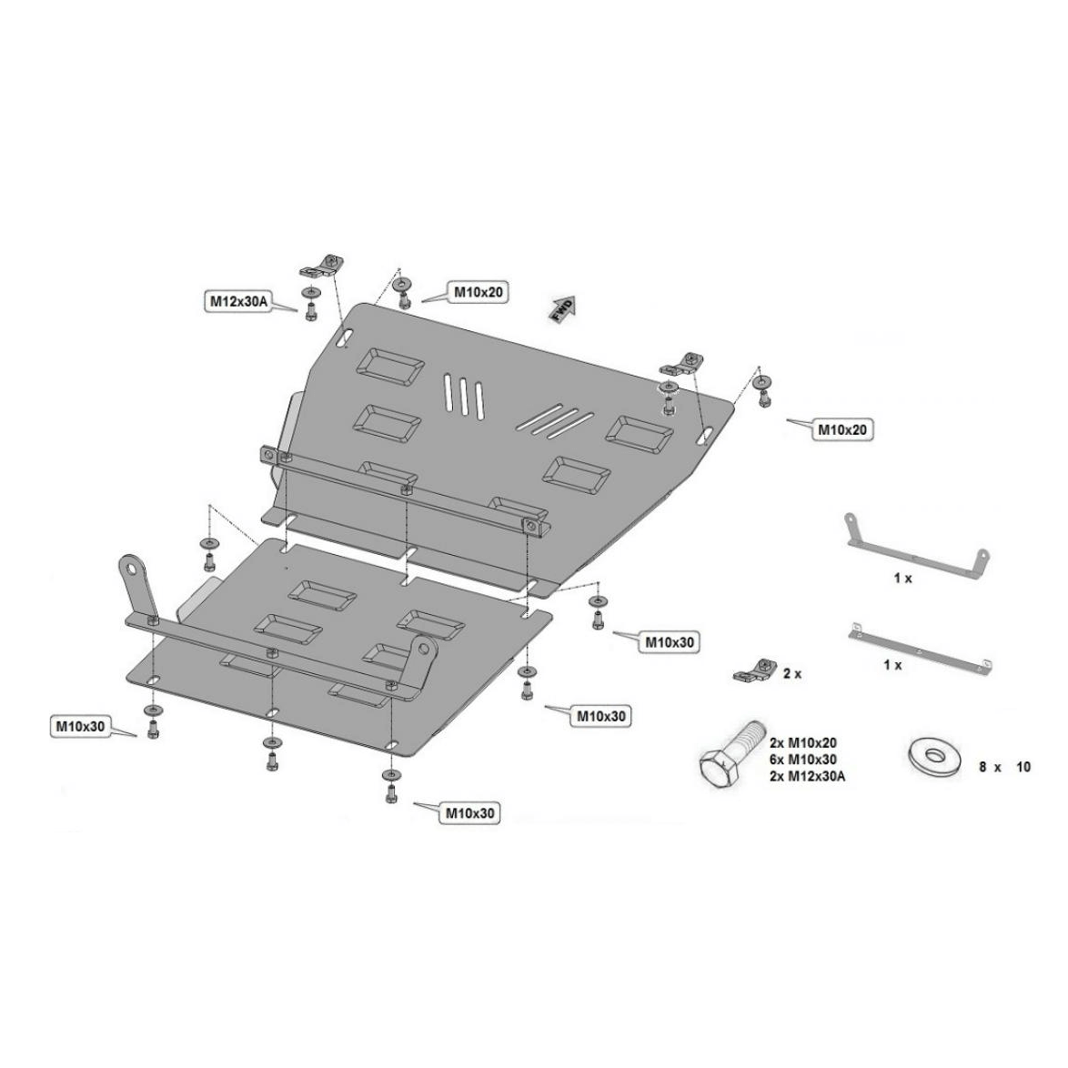 Piastra protezione motore Nissan Terrano 2. Acciaio spessore 3 mm. Compatibile con tutte le versioni motore.